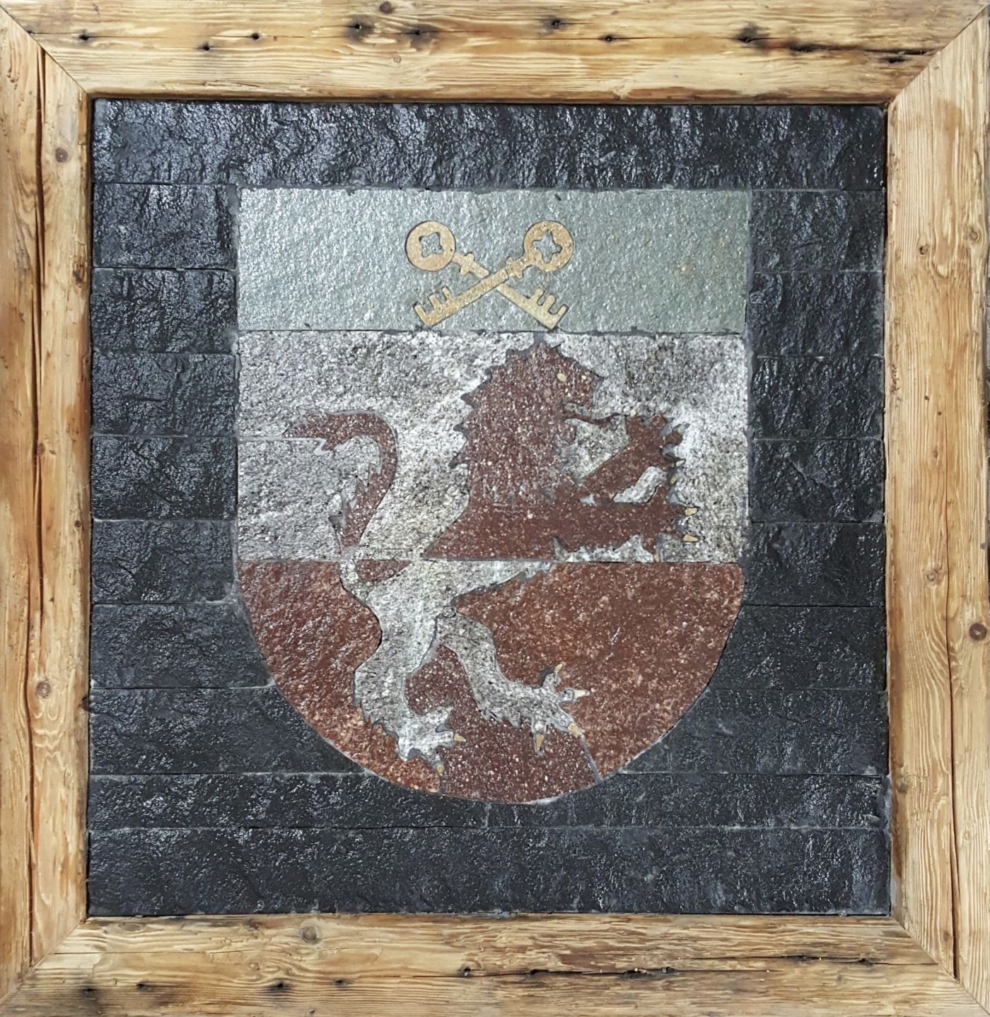 2200 € - The historic coat of arms of the municipality of Auer in South Tyrol - made of different stones by hand, without using paint. The 1 x 1 meter large Wapppen takes its color exclusively from the natural stones used here.