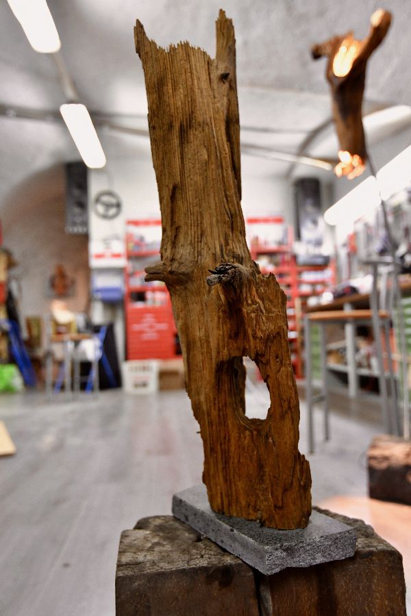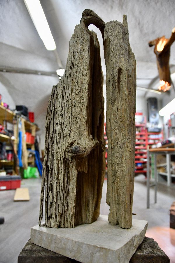 From driftwood that was driven in South Tyrol and has its own character we manufacture stone-steel-wood sculptures. Of course, each exists only once. Sculpture big.