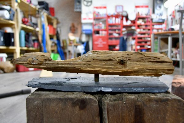 From driftwood that was driven in South Tyrol and has its own character, we produce style-steel-wood sculptures. Of course, every mini-sculpture (paperweight) exists only once. Sculpture small.