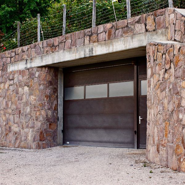 Entrate garage non devono per forza essere costruite in cemento poco estetico. Noi li realizziamo in pietra naturale - con o senza commessure. Su richiesta rivestiamo elementi in cemento con pietre naturali.