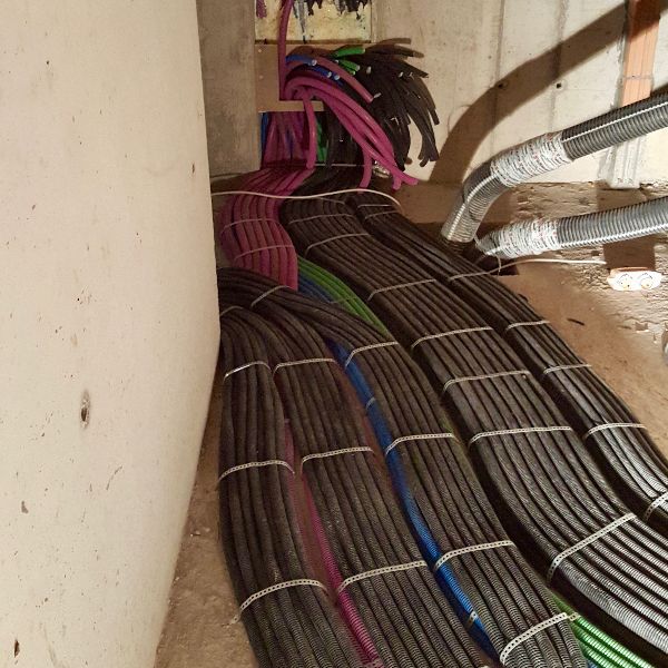 Ci prendiamo cura di tutto l'impianto elettrico dalla sua installazione fino al completamento dell'immobile. Sia la posa delle linee elettriche principali che la protezione elettrica secondo le norme di sicurezza più attuali e l'attacco di una semplice lampadina in salotto o nella camera per i bambini: noi ce ne occuperemo volentieri.
